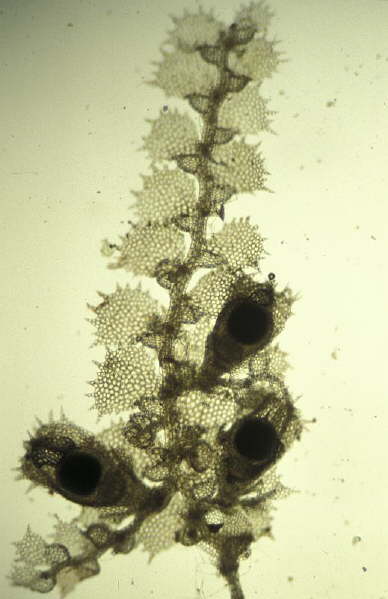 Lejeunea paucidentata (Steph) Grolle(= Dactylolejeunea acanthifolia R.M.Schust.)Habit, with perianths.Dominica, Schäfer-Verwimp 17737 (herb. Schäfer-Verwimp, GOET)